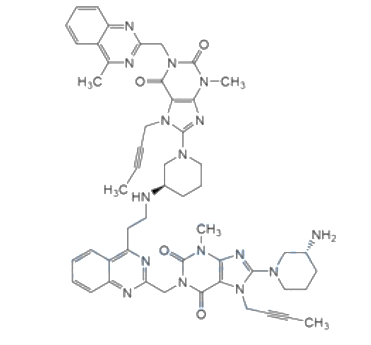 Synonyms : 8-((R)-3-aminopiperidin-1-yl)-7-(but-2-yn-1-yl)-1-((4-(2-(((R)-1-(7-(but-2-yn-1-yl)-3-methyl-1-((4-methylquinazolin-2-yl)methyl)-2,6-dioxo-2,3,6,7-tetrahydro-1H-purin-8-yl)piperidin-3-yl)amino)ethyl)quinazolin-2-yl)methyl)-3-methyl-3,7-dihydro-1H-purine-2,6-dione