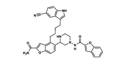 Synonyms : 5-(4-(Benzofuran-2-carboxamido)piperazin-2-yl)-4-(4-(5-cyano-1H-indol-3-yl)butyl)benzofuran-2-carboxamide.
