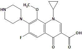 Synonyms : 1-Cyclopropyl-6-fluoro-8-methoxy-4-oxo-7-(piperazin-1-yl)-1,4-dihydroquinoline-3-carboxylic acid